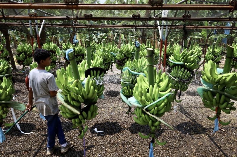 A orillas del río Suchiate, un mandador avanza por una finca de banana de 600 hectáreas que lleva unos 20 años funcionando. Se ven plantas de banano hasta donde alcanza la mirada. Cada doscientos metros, una canaleta con un líquido rojo sirve para desinfectar la suela de los zapatos de los visitantes y evitar que algún hongo llegue a las plantas. “Nosotros aquí tenemos un dicho: A esta planta solo el viento la puede tocar. Yo a veces hasta les hablo”, dice el mandador para explicar la delicadeza del cultivo.